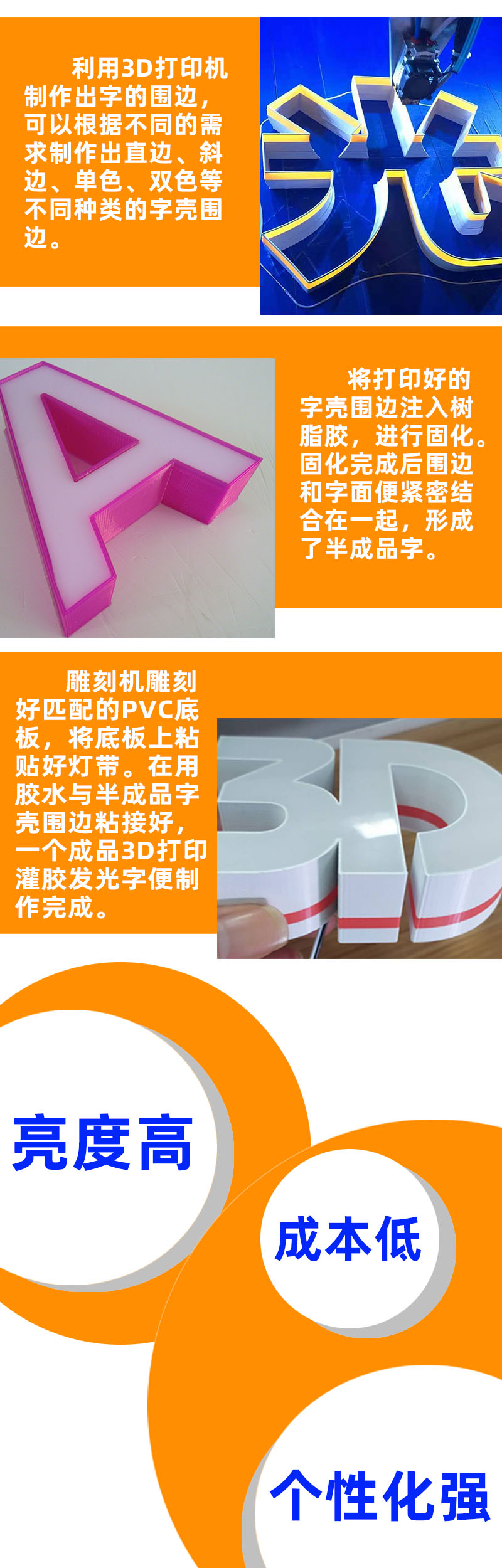3D打印灌胶发光字以其亮度高、成本低、个性化强等诸多优点在市场上迅速得到认可。其制作过程需要的技术门槛低,所需配套设备少投资低,是选择广告发光字行业的不错选择