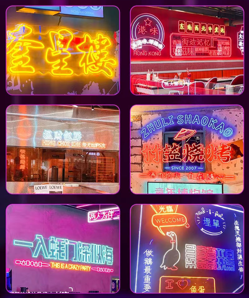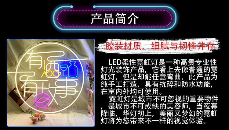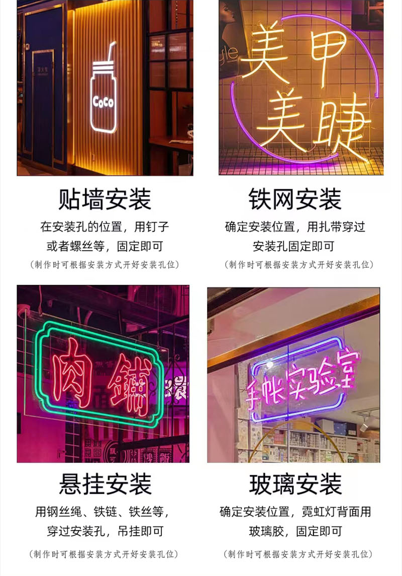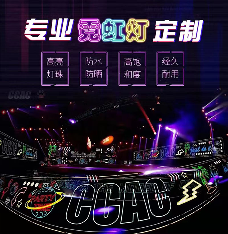 霓虹灯发光字可以采用不同的颜色、字体设计,能够达到不同的视觉效果,可以让广告更加丰富多彩
