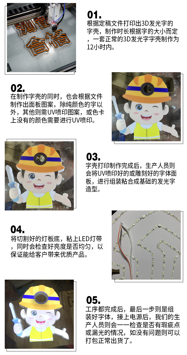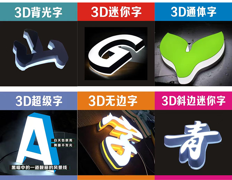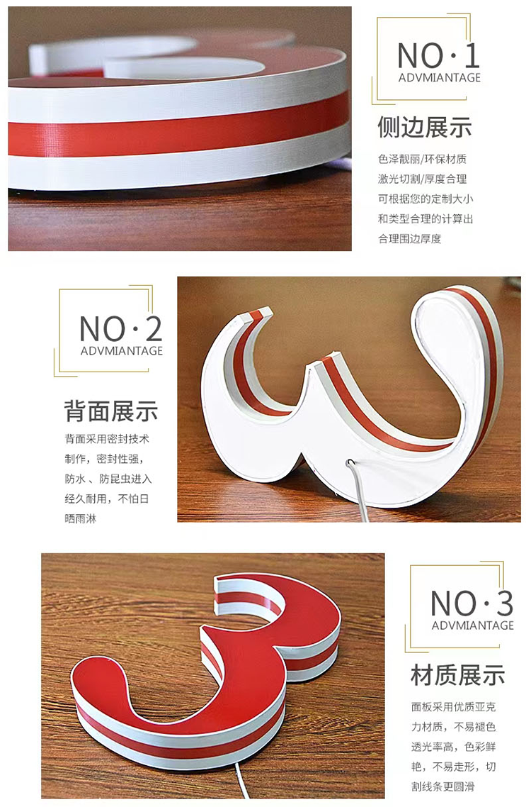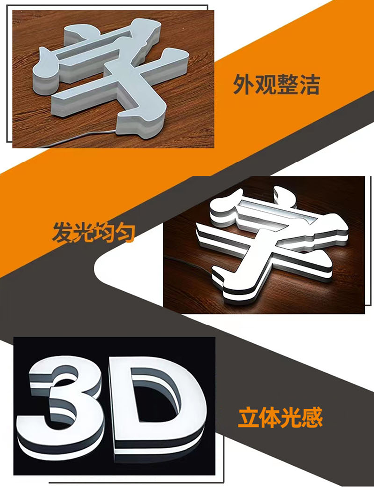 造型可以多变,立体感强。除了方形立体字,凹凸面和斜切面的异形立体字也可以制作