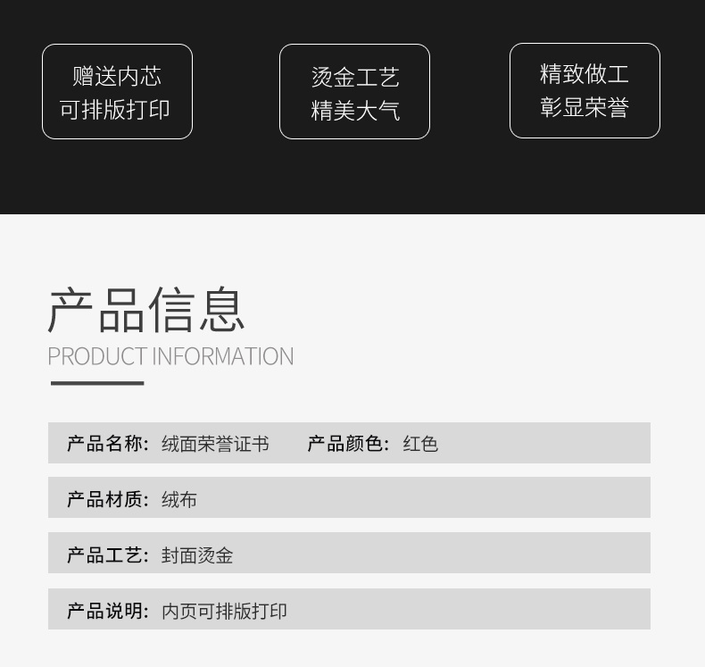 (启恒) 奖牌试绒布荣誉证书