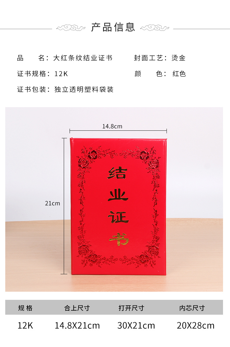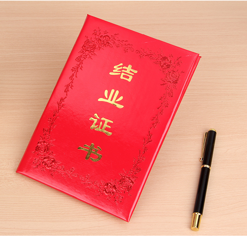 大红条纹横字款结业证书