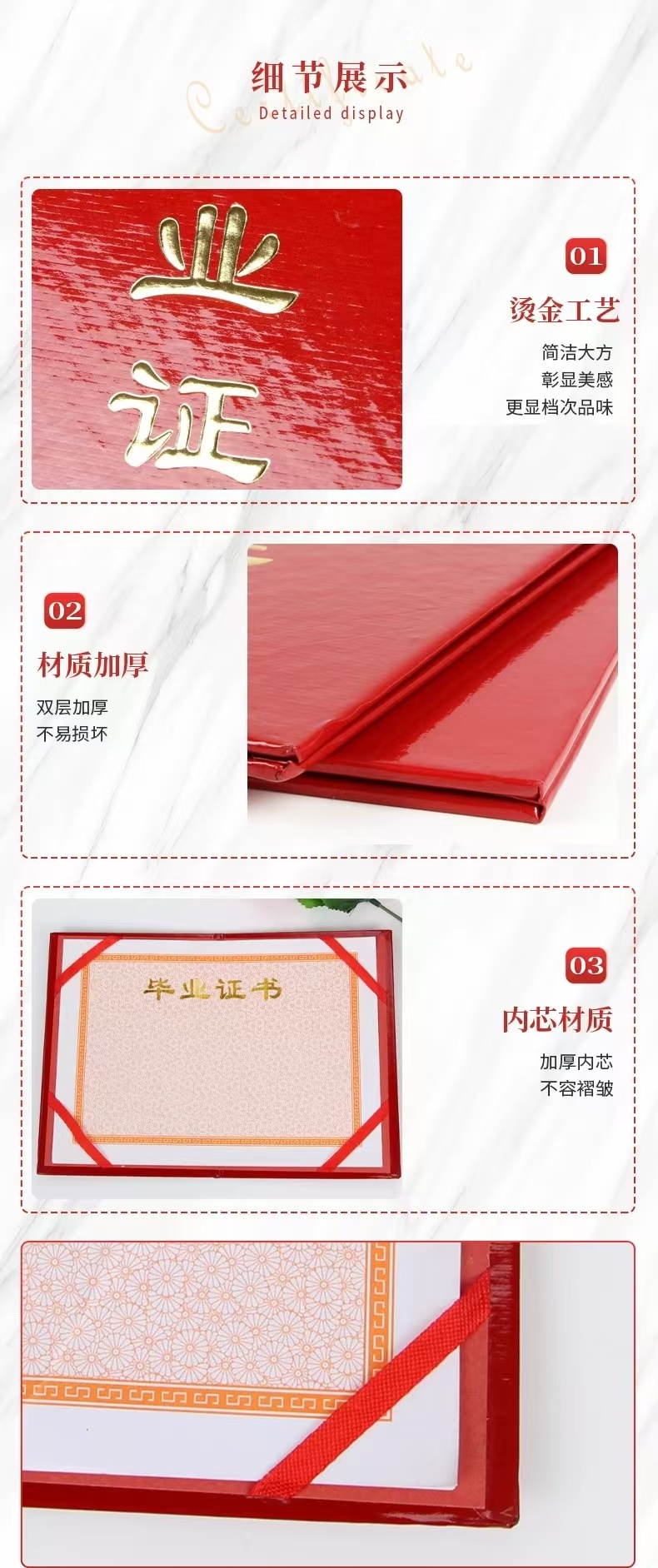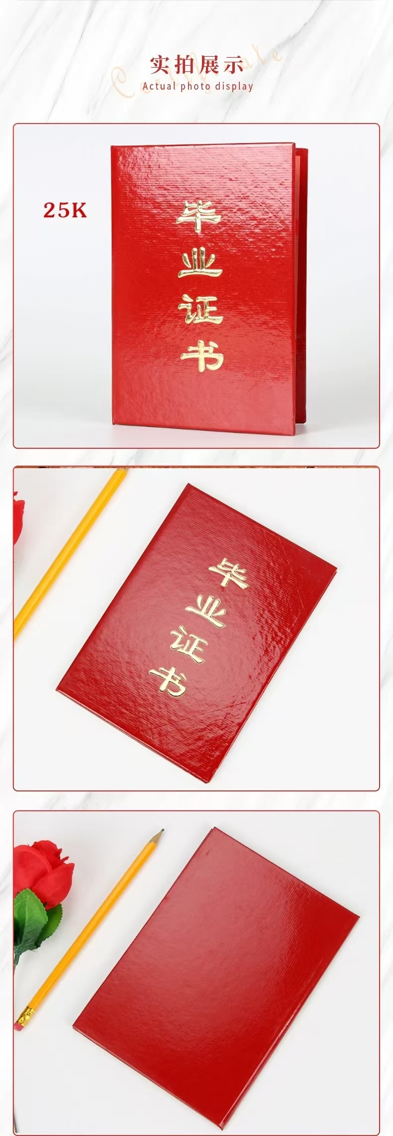 (启恒)光面竖字款烫金毕业证书