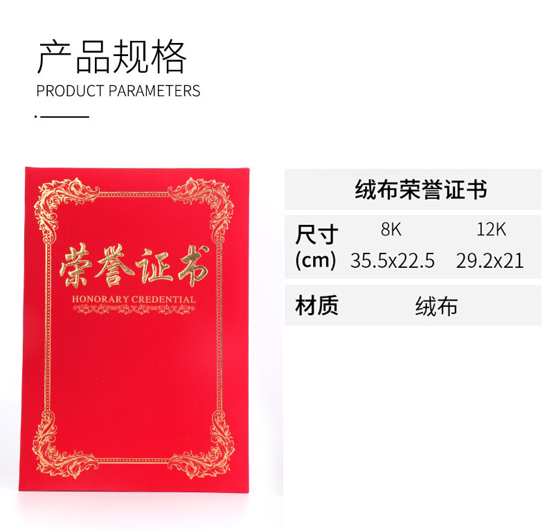 (启恒)绒布四角花框荣誉证书