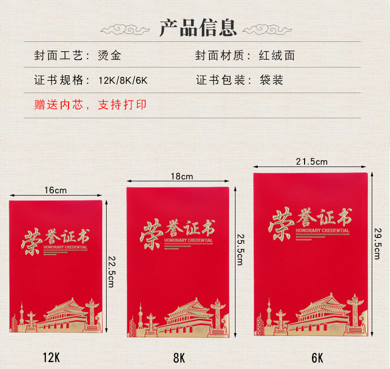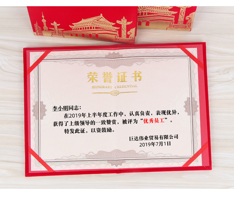 (启恒)绒面建筑烫金荣证书