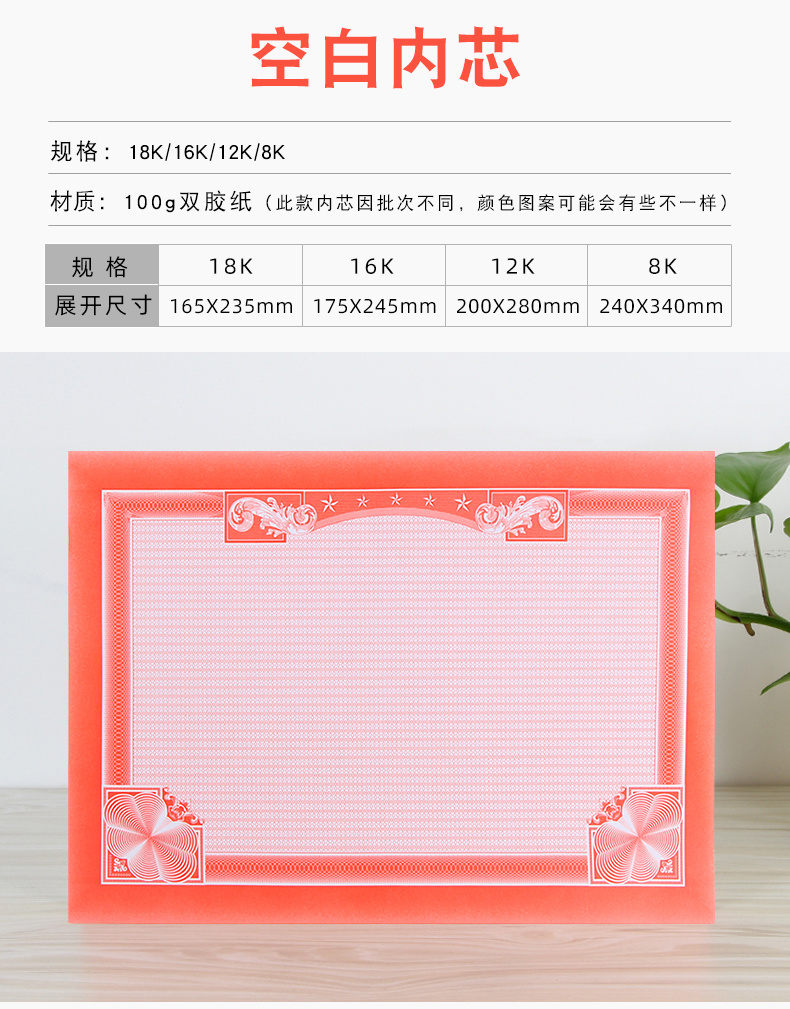 (双胶纸)空白证书内芯100g (内页)