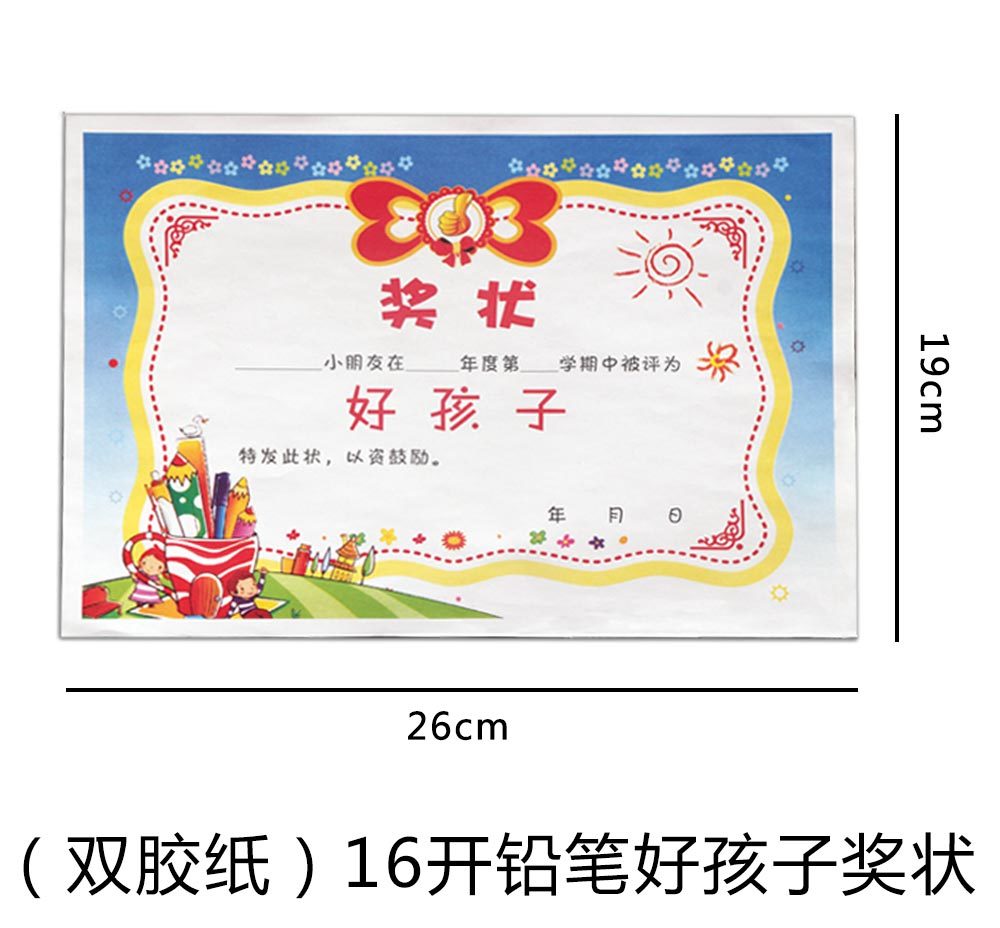 (双胶纸)16开铅笔好孩子奖状