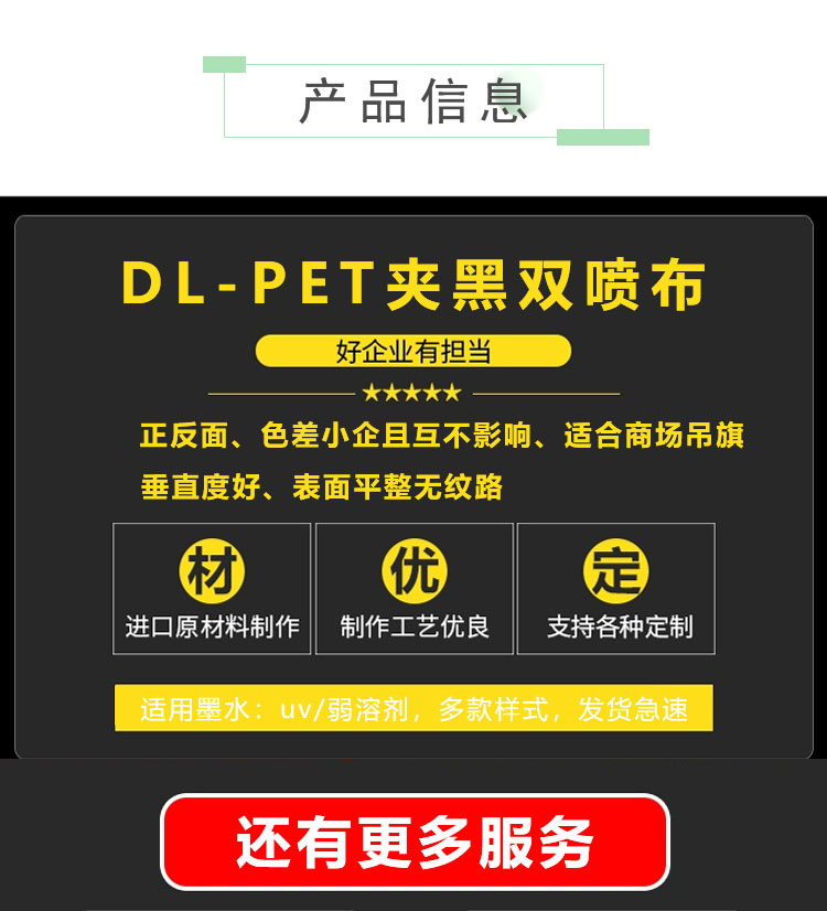 正反画面色差小且互不影响,适合制作商场中庭吊旗,垂直度好,表面平整无纹路,品质保障,急速发货