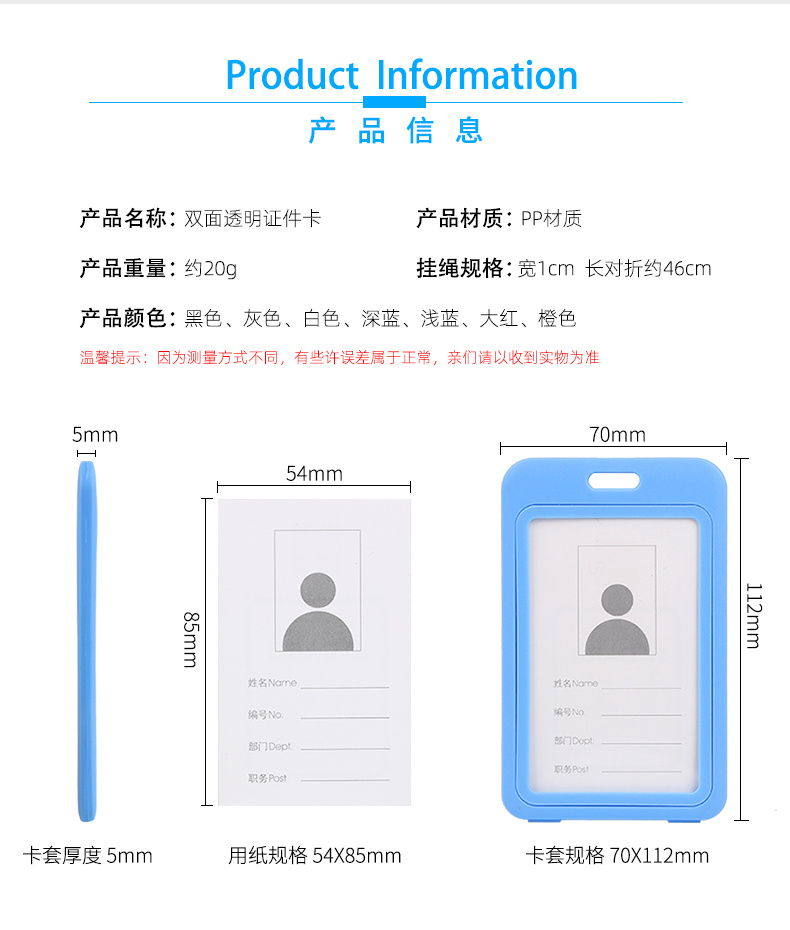 卡宾仕双面透明证件卡 (竖款)(证件卡/工作证)