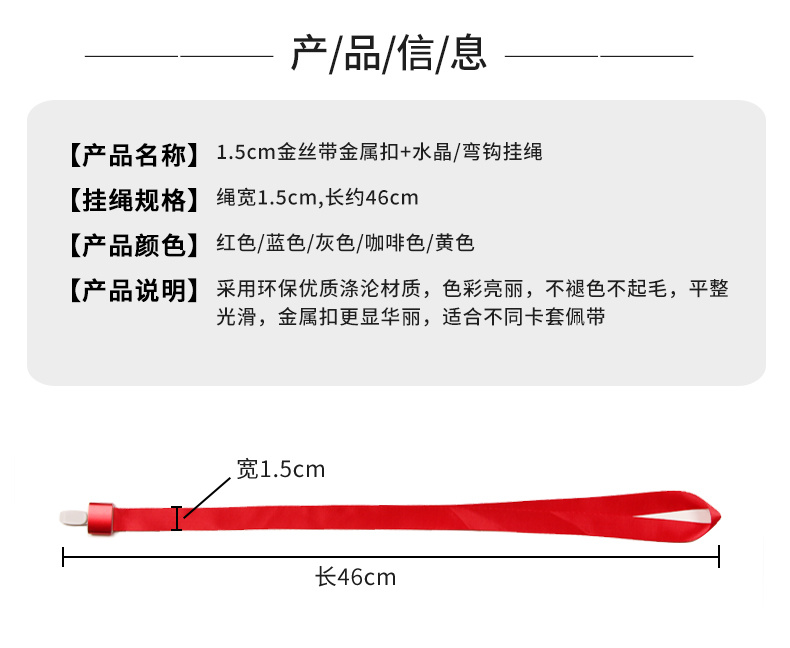 1.5cm弯钩挂绳+金丝带金属扣(吊绳/挂绳)