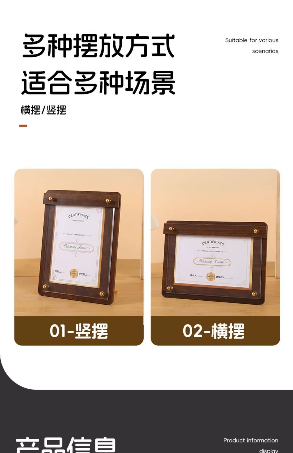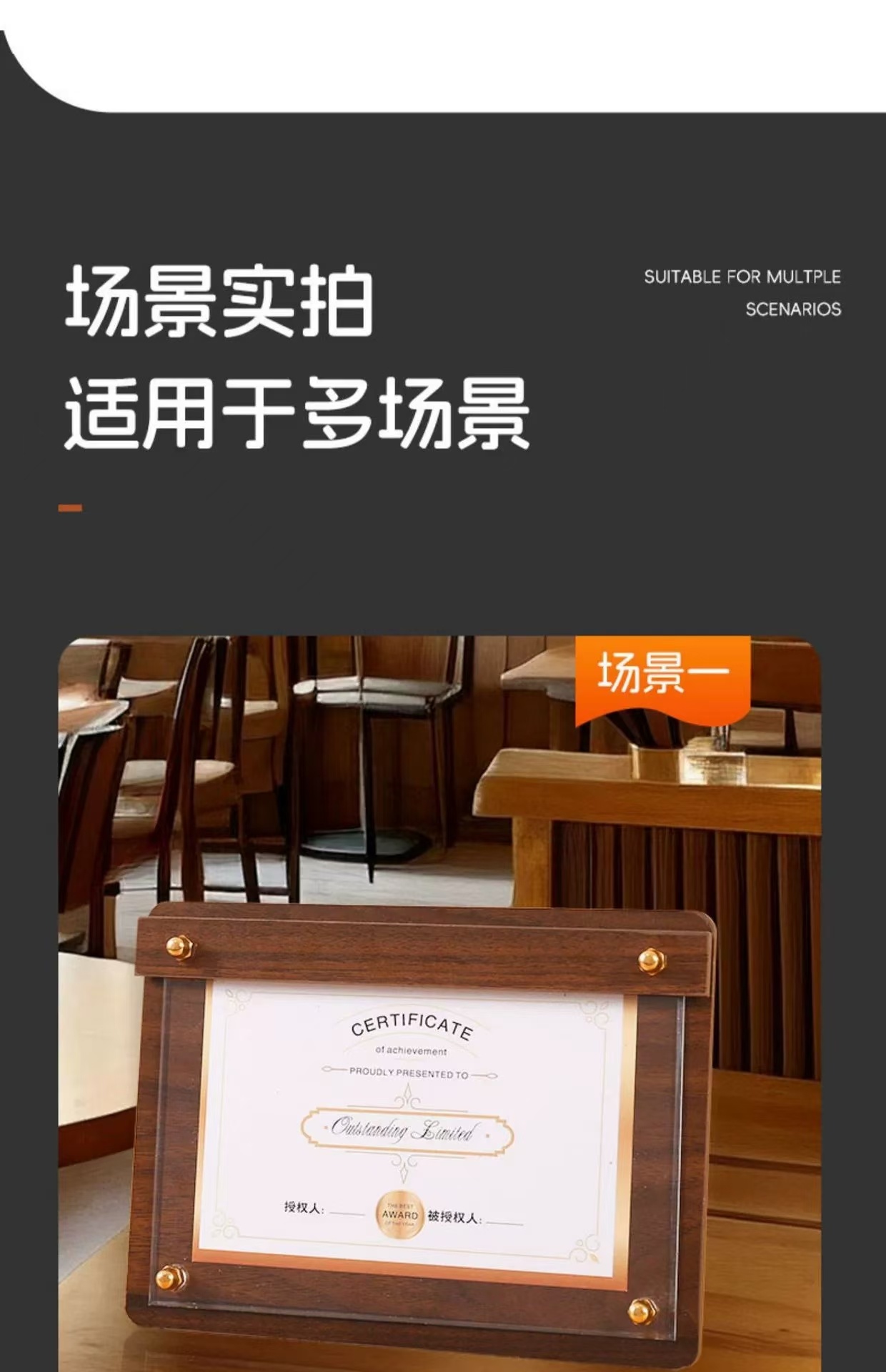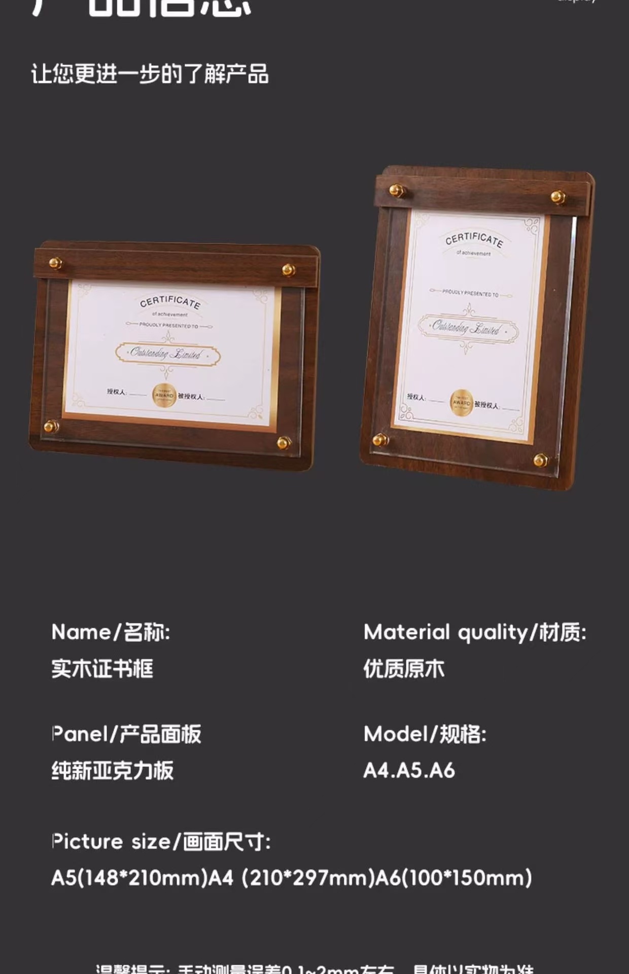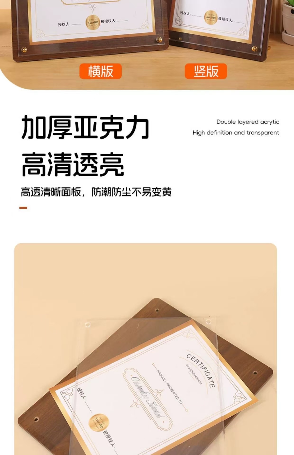 黑胡桃木亚克力授权牌 (镜框/相框)