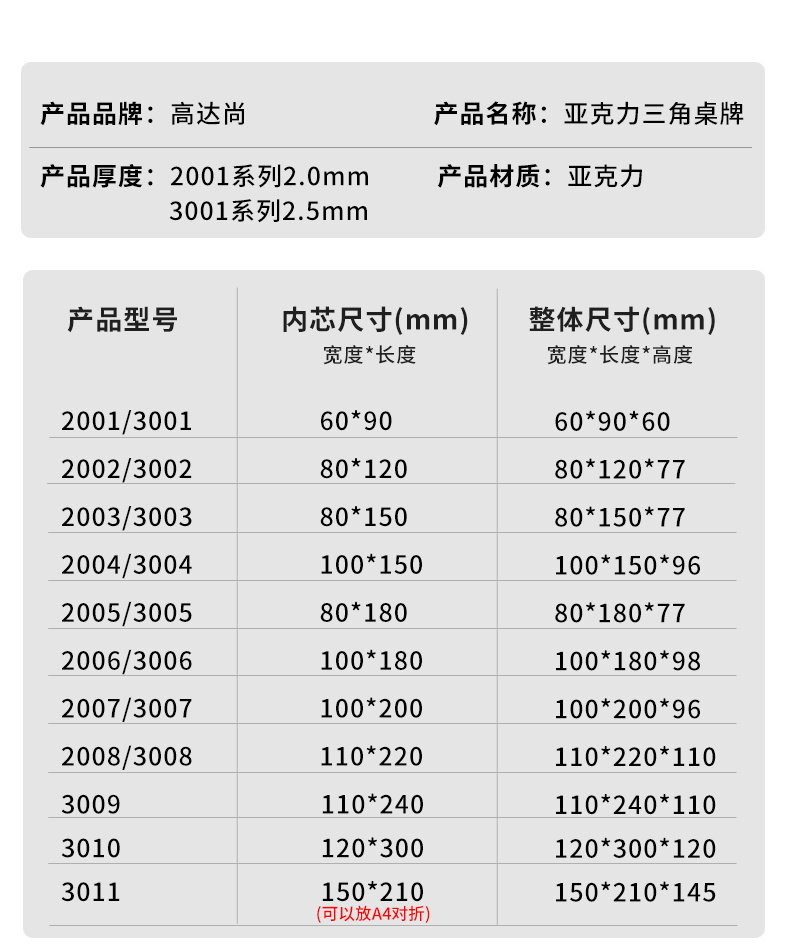 厚款三角亚克力台签 (台卡/三角台签)