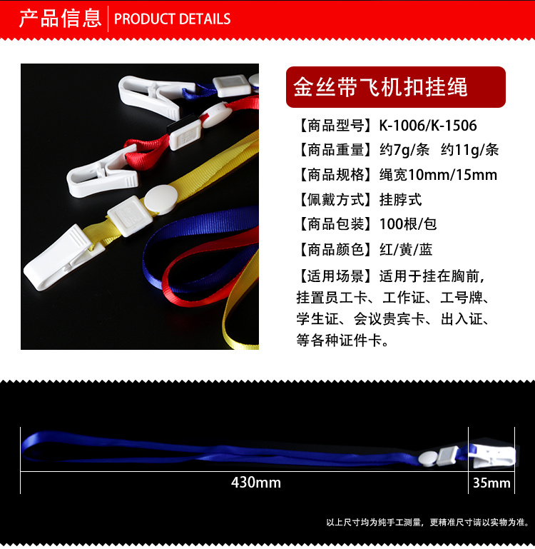 (K-1006)飞机扣夹+金丝带绳(吊绳/挂绳)