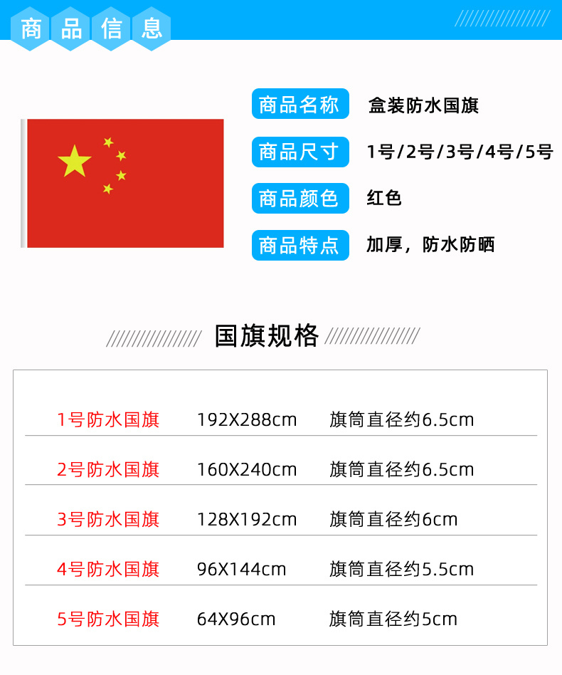 特级盒装防水国旗1~5号旗