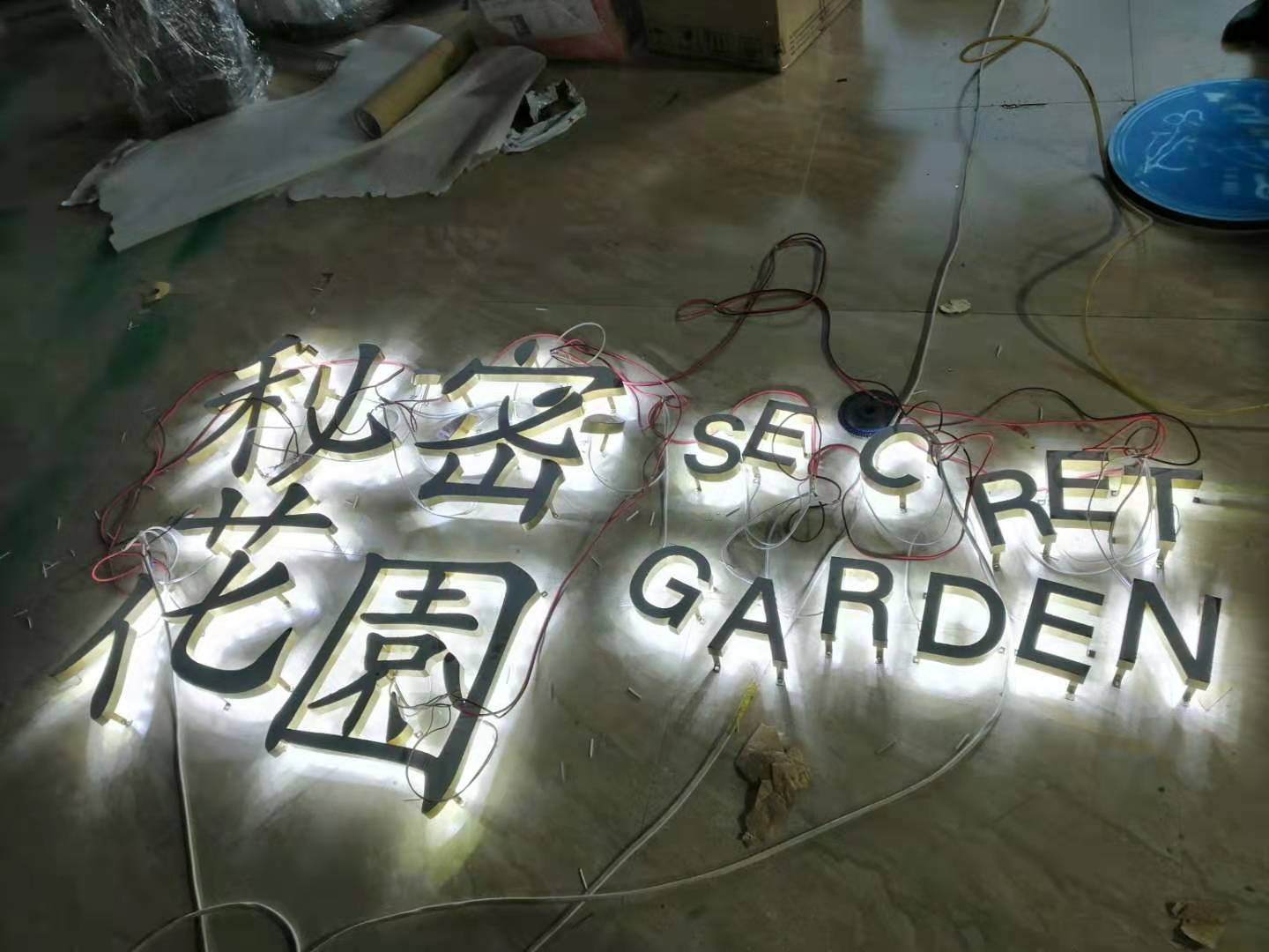 撑脚背发光字一般是在字背面的凹槽里嵌入LED灯带,安装方式一般采用为支架离墙安装,而不锈钢嵌亚克力侧发光字就是在字的最底部加垫一层亚克力,安装方式一般采用为贴墙安装