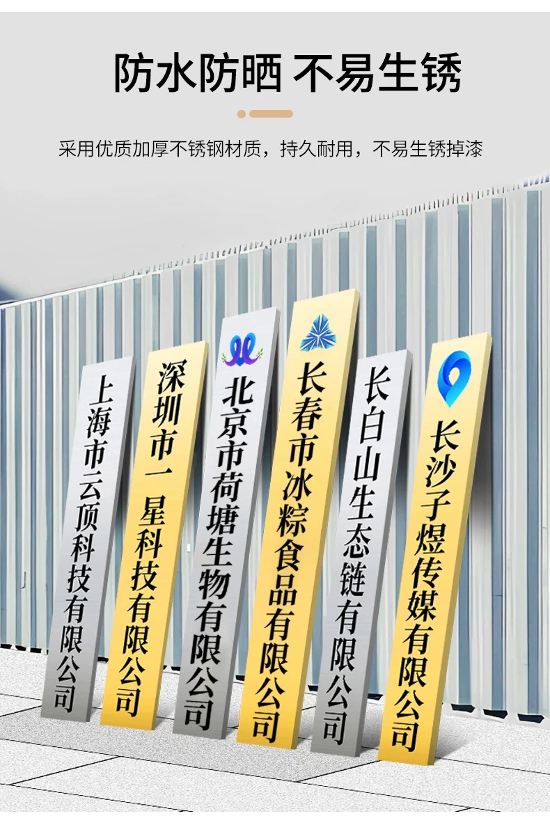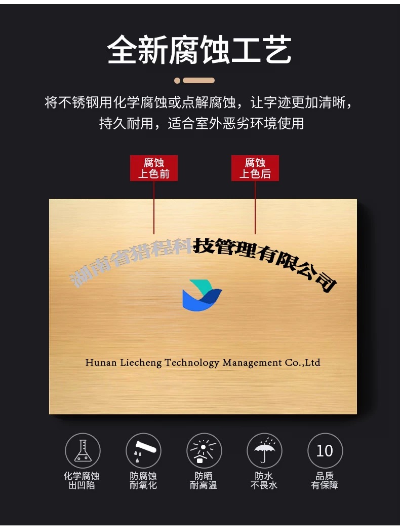 腐蚀工艺|隔天出货|不锈钢腐蚀牌是以不锈钢板为材料,通过腐蚀、压铸或印刷等手段加工而成的广告指示牌