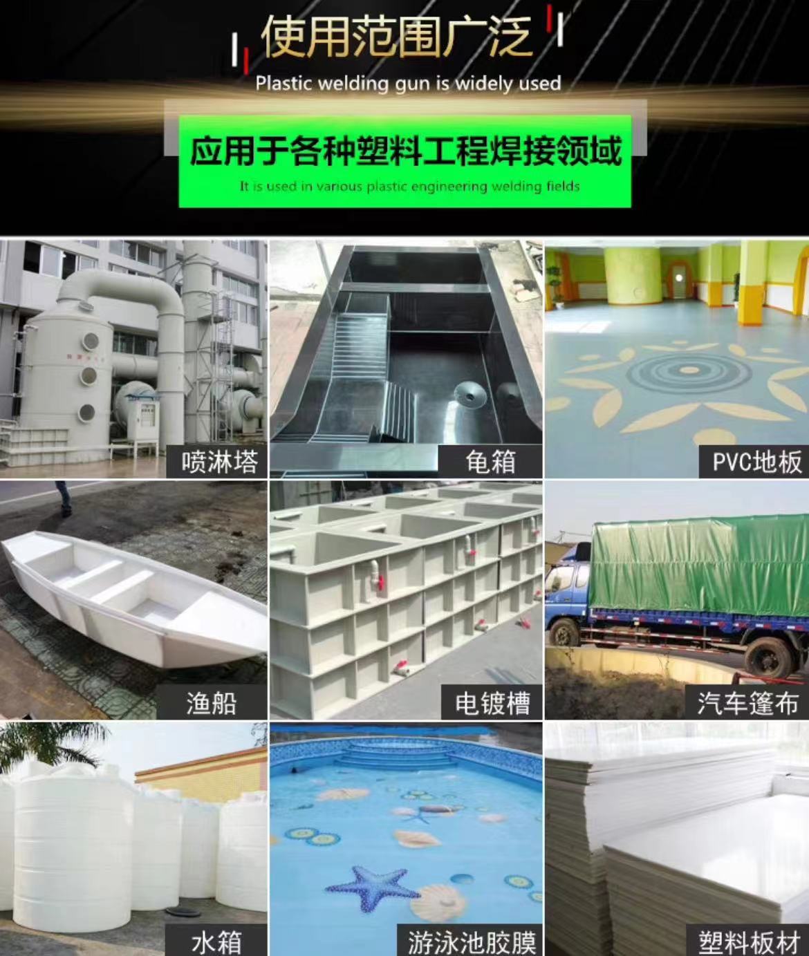 适用于各种塑料材料的焊接,如PVC、PE、PP等,广泛应用于管道、容器、家具、汽车等行业,使用安全可靠,同时避免了高温对塑料材料的影响