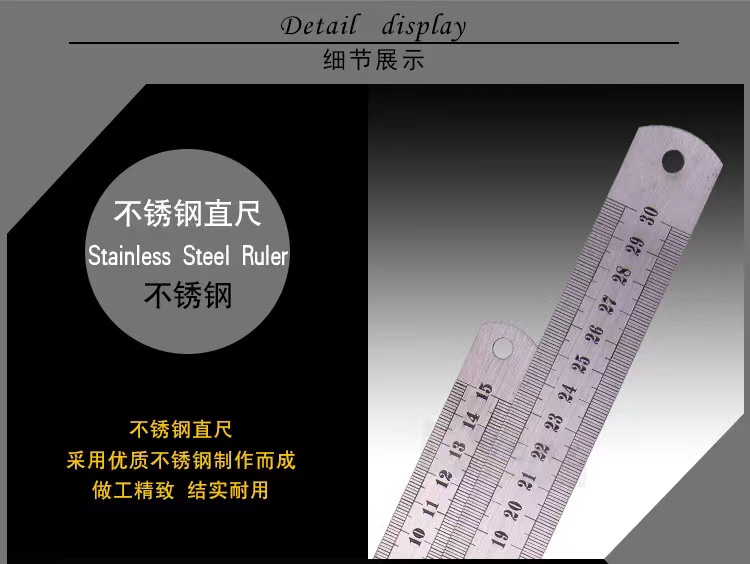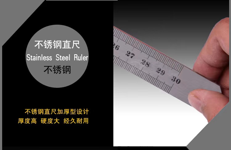 不锈钢直尺加厚通常用于各种工业生产和质量检测领域,如机械加工、家具制造、建筑测量等。它可以用于测量长度、宽度、高度、角度等参数,是生产线上必备的测量工具之一