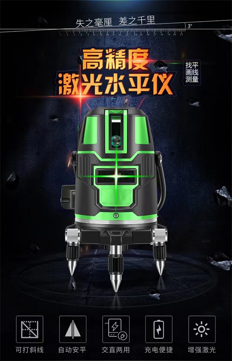 激光水平仪-双锂电是一种使用双锂电池供电的激光水平仪。这种水平仪具有高精度、快速测量和易用性等特点,广泛应用于建筑、装修、家具制造等领域