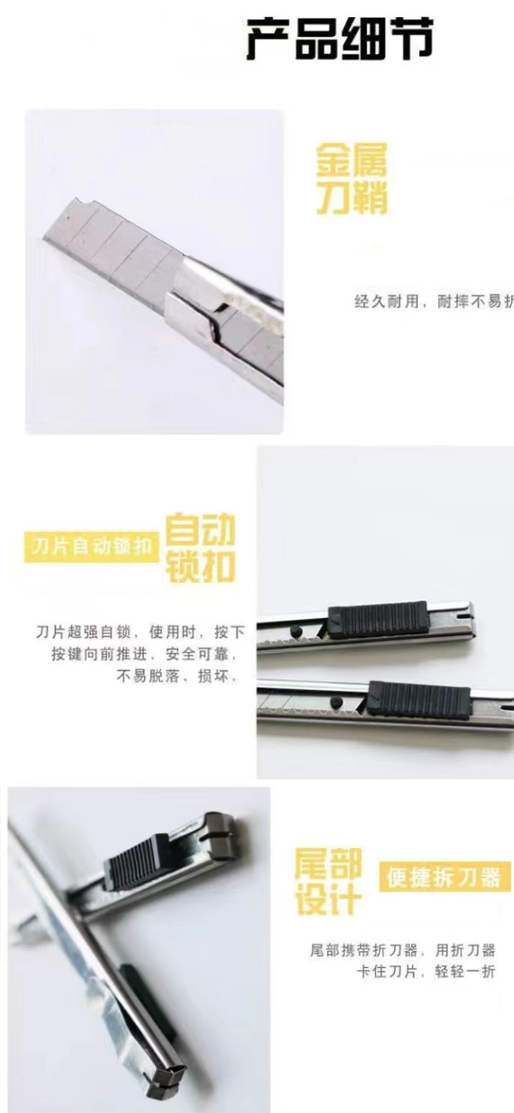 用于裁剪纸张、布料等材料。它通常由刀片、刀柄和刀架组成,刀片锋利,可以快速地切割材料