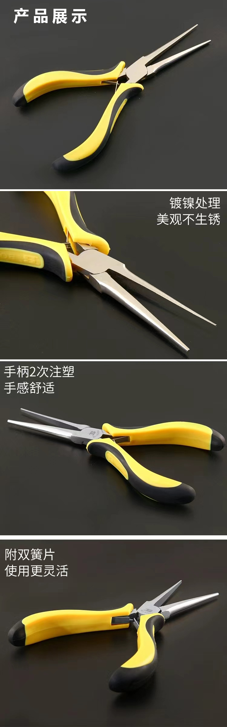 5.5公分尖嘴钳是一种小型的、专门用于精细操作的钳子,具有尖嘴设计,可以轻松夹持和操作细小的物件