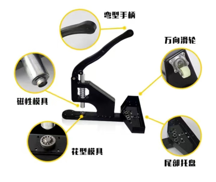 万向轮压扣机是一种专门用于压扣的机械设备,适用于各种规格和材质的管件、接头等