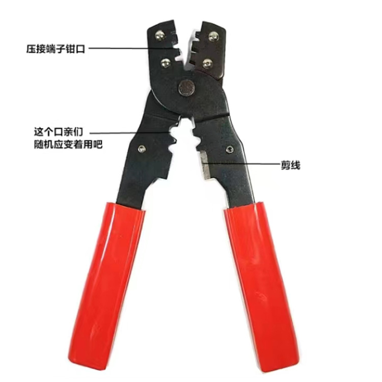 压线钳是一种常见的工具,主要用于压接导线、电缆等线路的接头。它具有多个刀片和切线刀口,可以用来剥线、剪线和压线