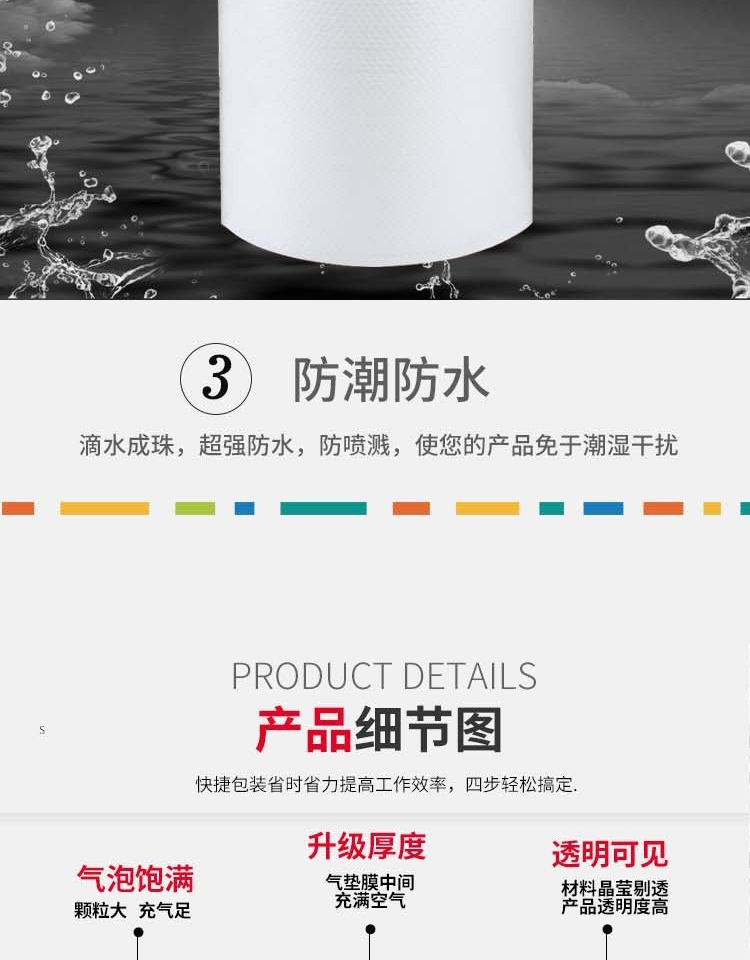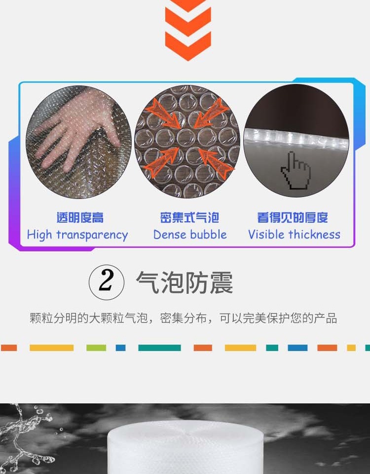 气泡膜具有质地轻、透明性好、无毒、无味等优点,可对产品起防湿、缓冲、保温等作用