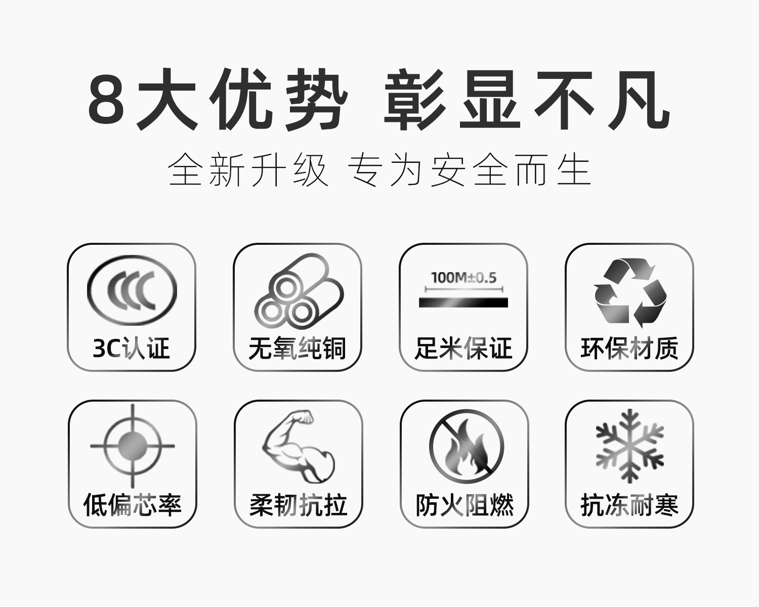 是一种高性能的电线,其导体采用高纯度无氧铜材料,具有优良的导电性能和电气性能,采用特殊的护套材料,具有良好的耐磨损、耐腐蚀、耐高温等性能,能够保证电线在使用过程中的安全性和稳定性