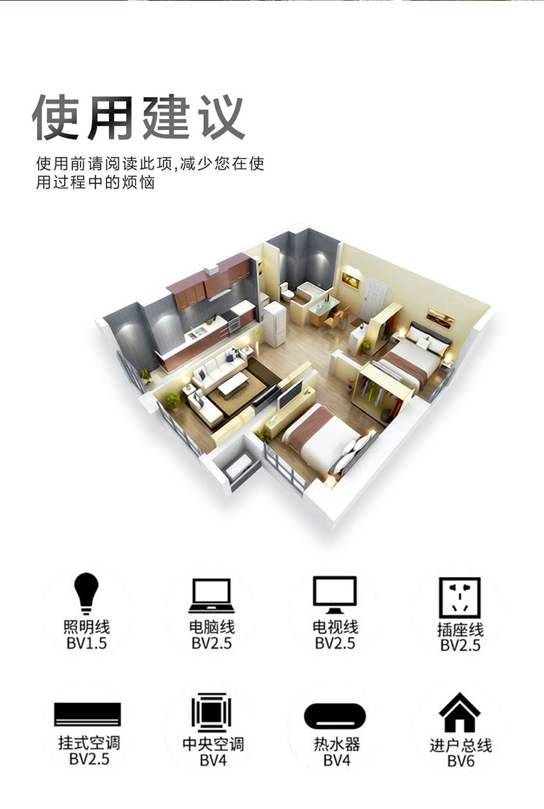 具有单芯单股硬线的特点,通常用于连接电源和电器设备,如照明、插座、电动机等
