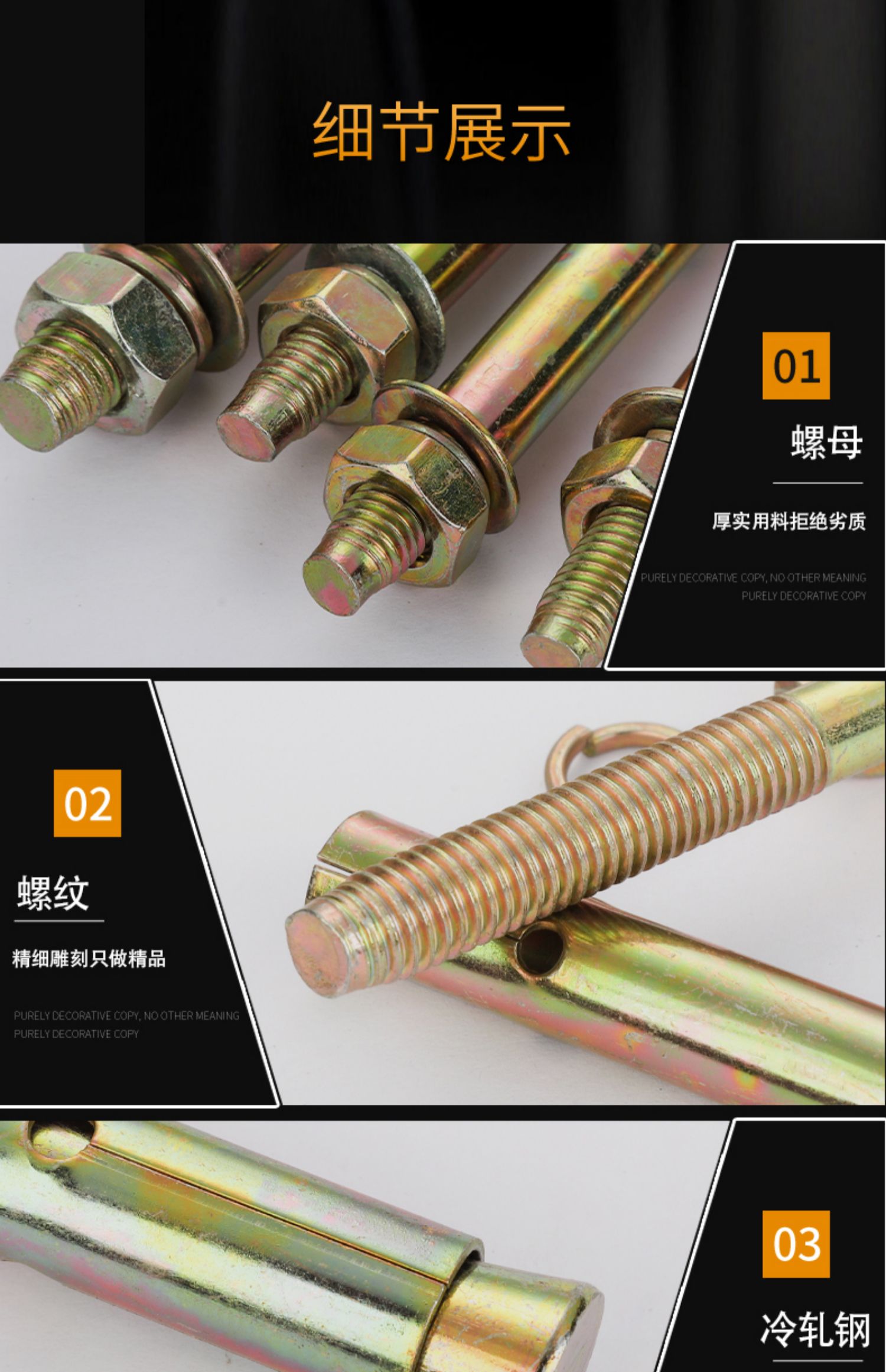 膨胀螺丝是一种常用的固定装置,其工作原理是利用膨胀螺栓的膨胀作用将墙壁或地面上的孔洞填满,从而将螺栓固定在墙面上。这种螺丝通常用于固定各种重物,如家具、电器、吊顶等