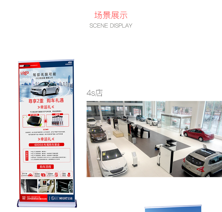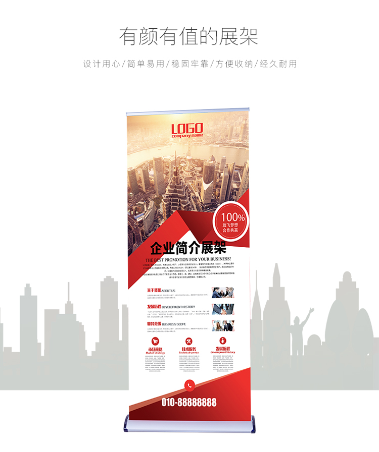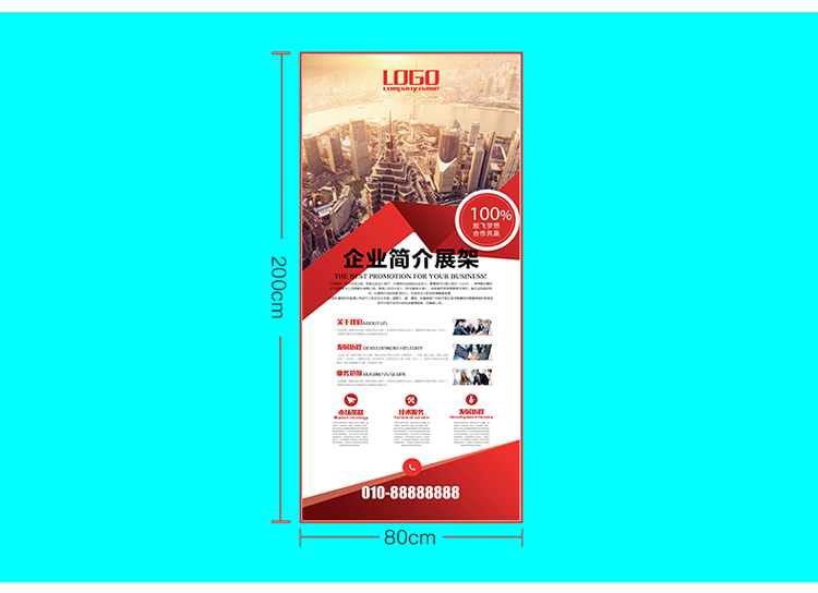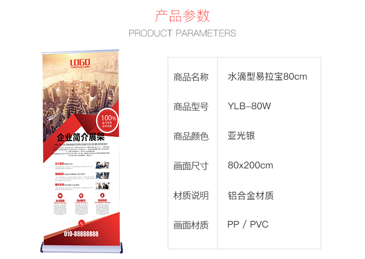 水滴形加厚铝合金豪华宽底座易拉宝80x200cm展架广告架展示海报架