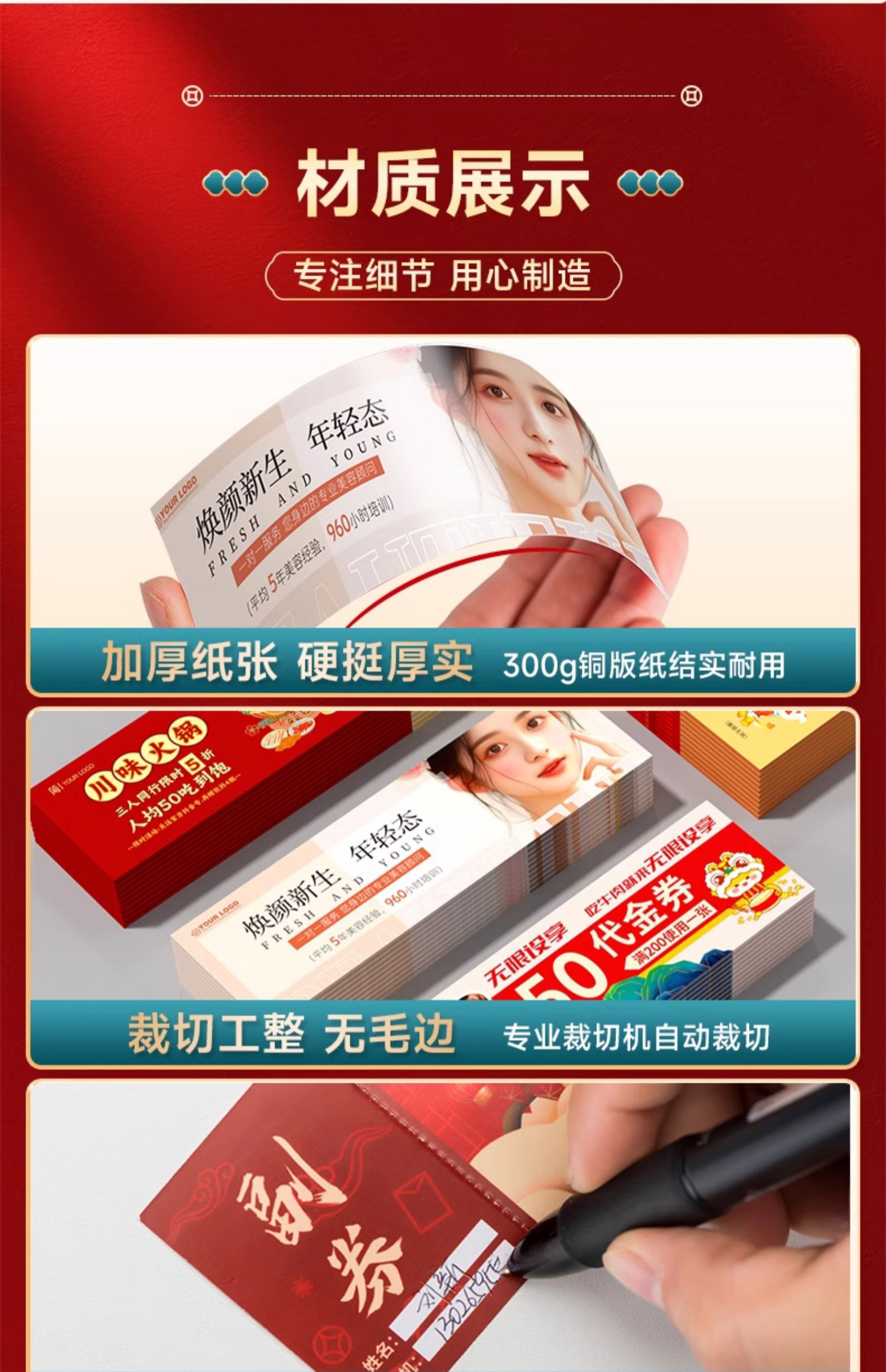 代金券定制优惠券定制卡片定制订制定做印刷体验卡门票抽奖券卡片定制抵用券消费券广告美容院宣传卡片定制