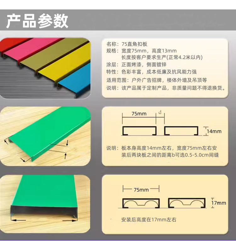 L75直角广告扣板木纹方通彩钢扣条广告牌铝金属户外门头招牌吊顶
