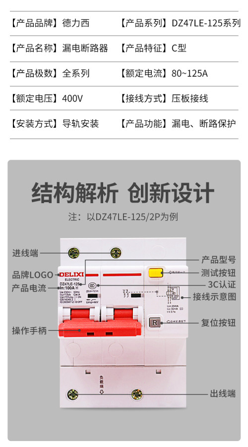 德力西/漏电断路器/DZ47LE-125 DZ47LE-125