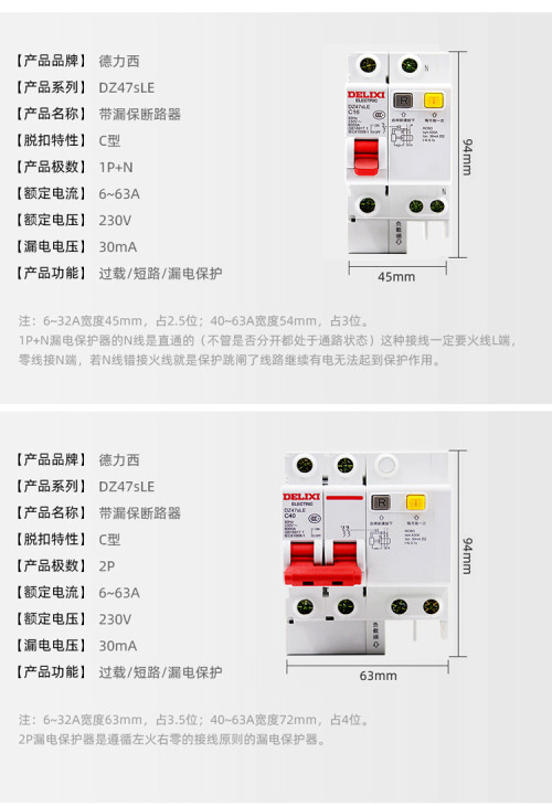 德力西/DZ47sLE/小型漏电断路器/漏电