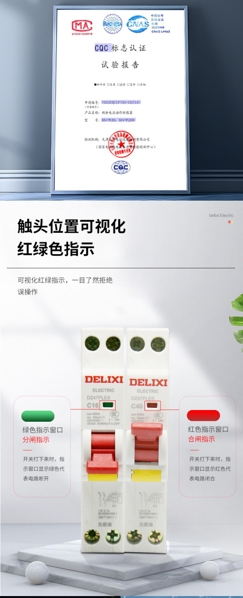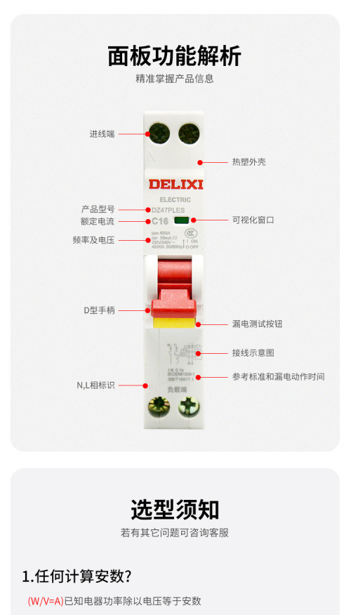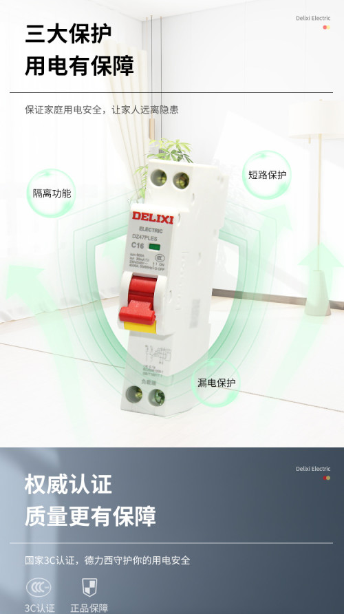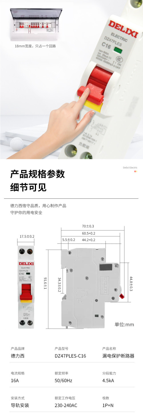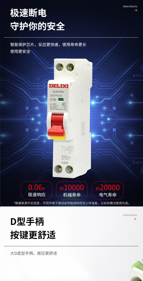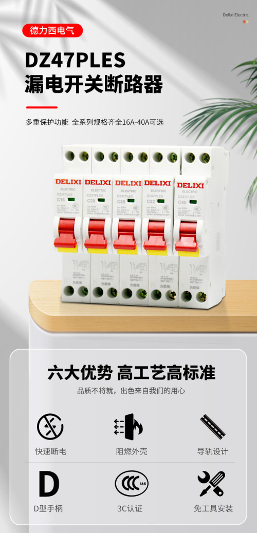 德力西/一体式漏电/一位漏电开关/DZ47PLES单片四孔