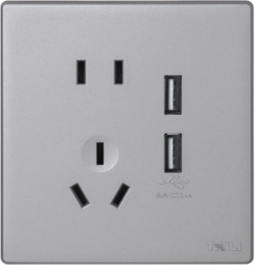 泰力V5 10A 五孔插带双USB插座 浅灰色
