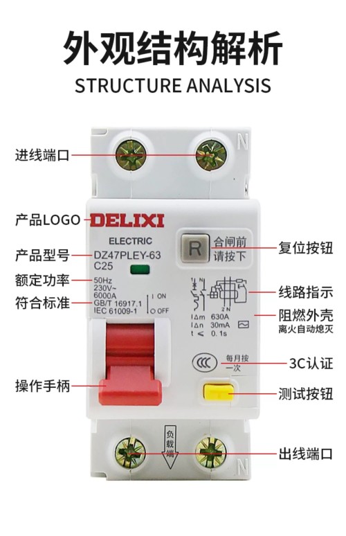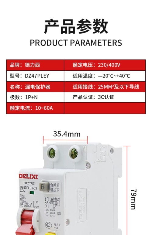 德力西DZ47PLEY-63 (2位小体积漏电)漏电开关