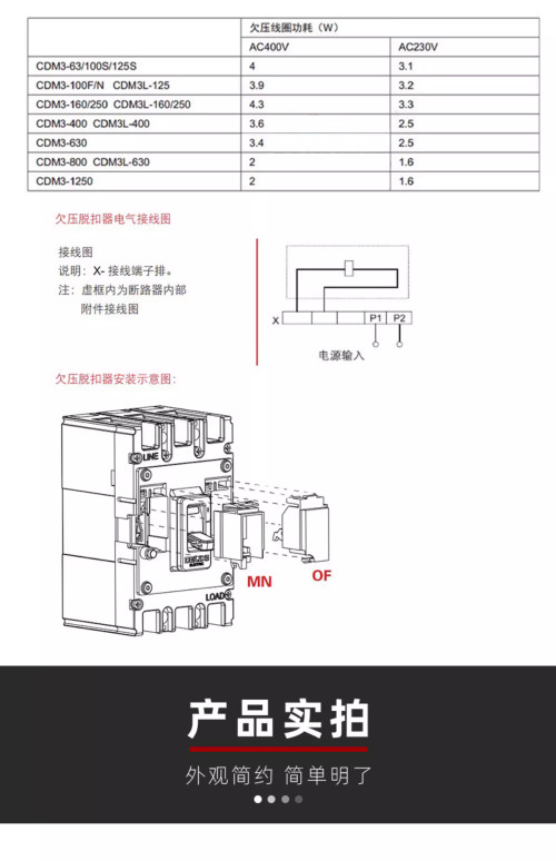 德力西分励脱扣器CDM3125A/250A/400A630ACDM3S断路器