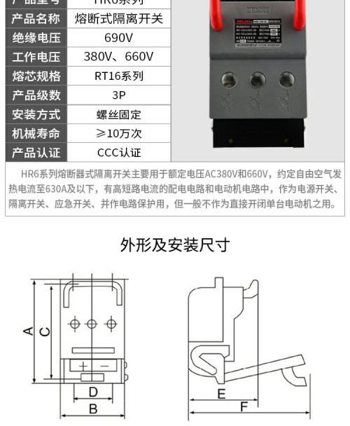 德力西/熔断式/HR6/隔离开关/刀熔