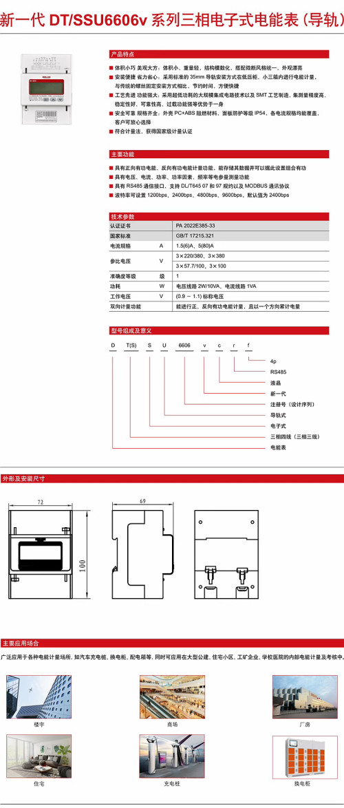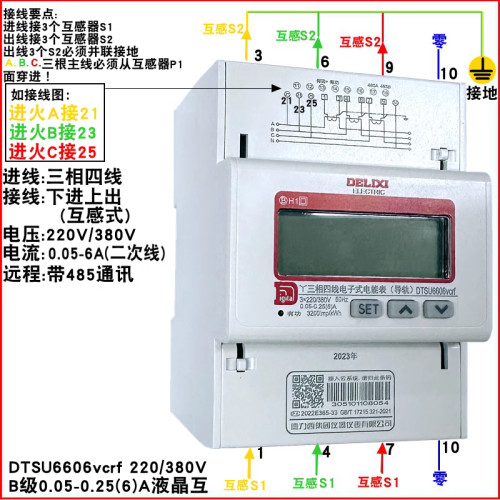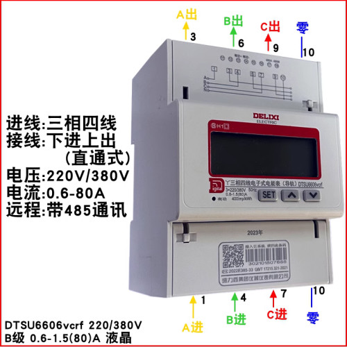 德力西三相四线电表DTSU6606电子式导轨式液晶数显电能表 6606vcrf