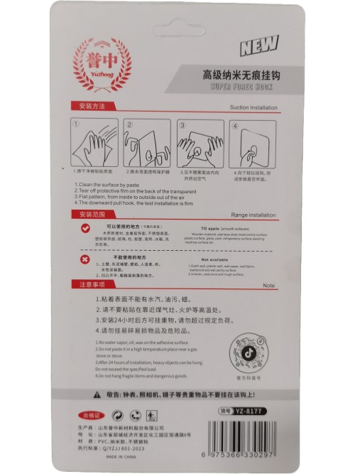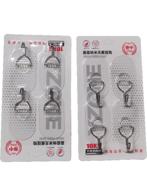 誉中高级纳米无痕不锈钢挂钩1板4个