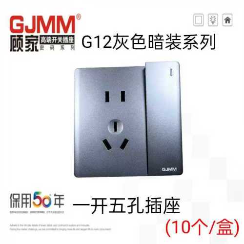 顾家开关插座G12暗装系列(灰色)加厚拉扣型墙壁开关墙壁插座
