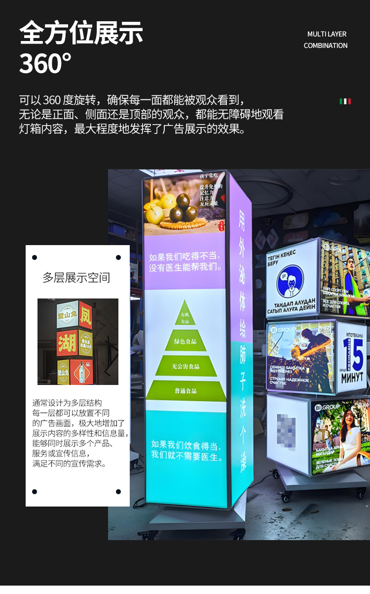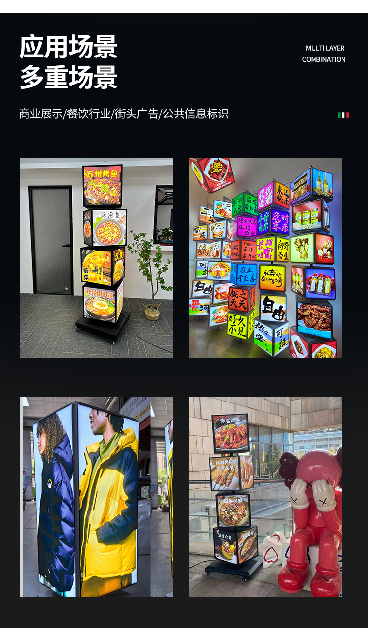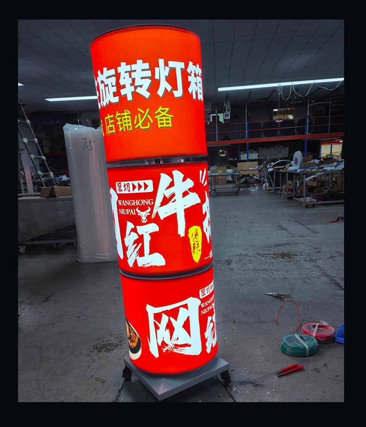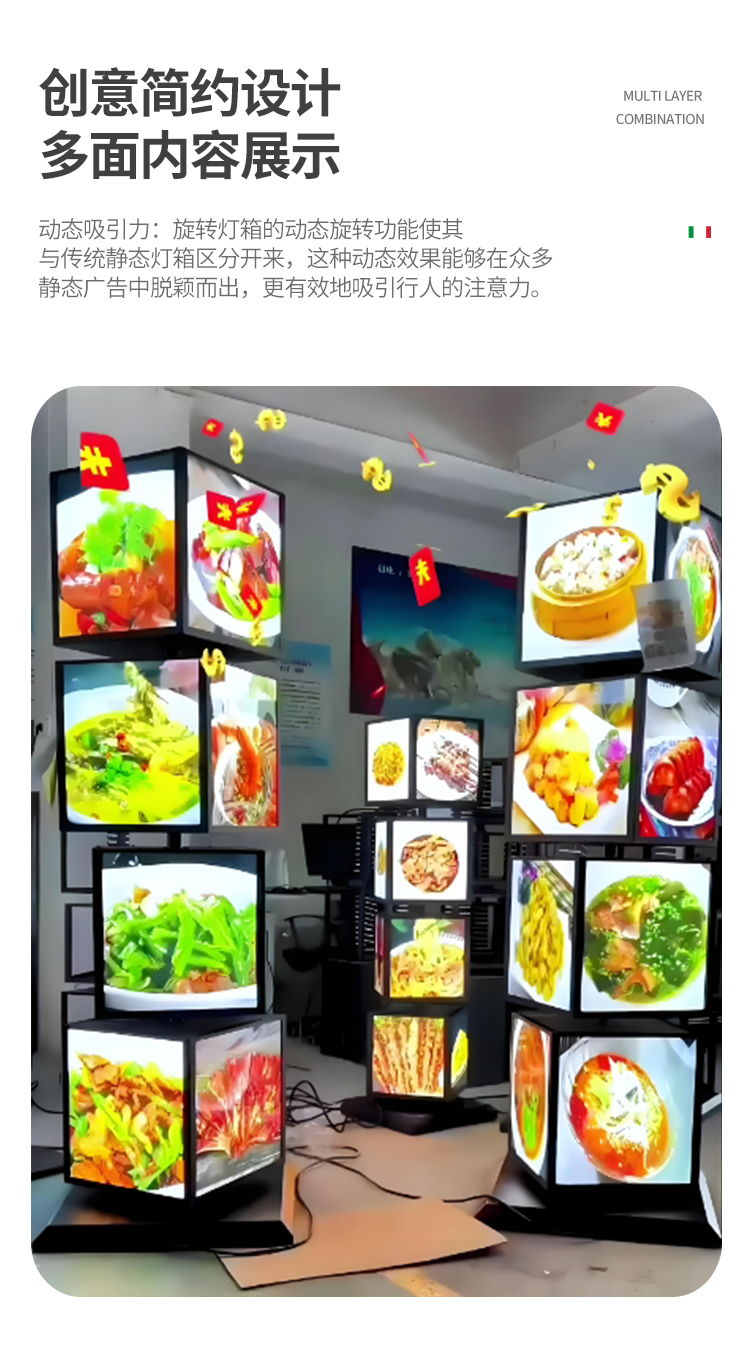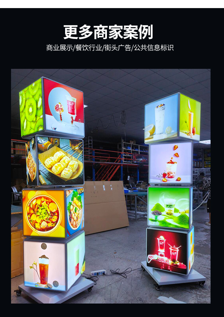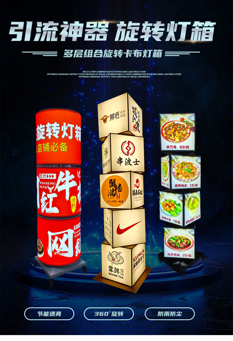 户外立式旋转灯箱落地可移动方形多层四面滚动发光餐饮展示广告牌