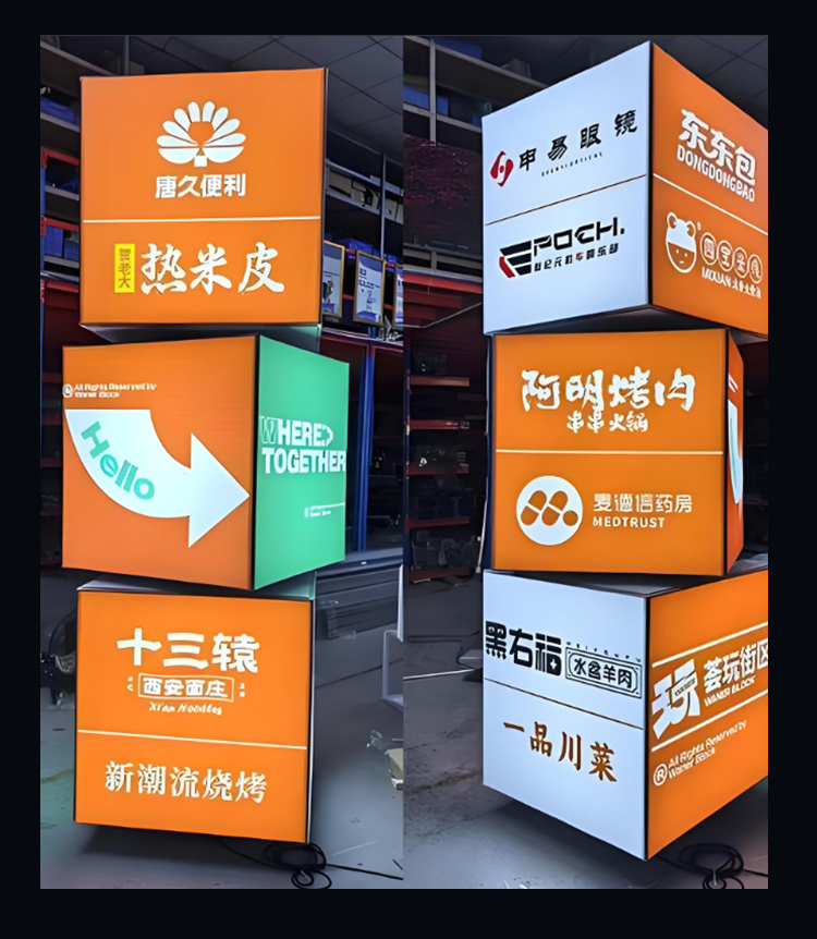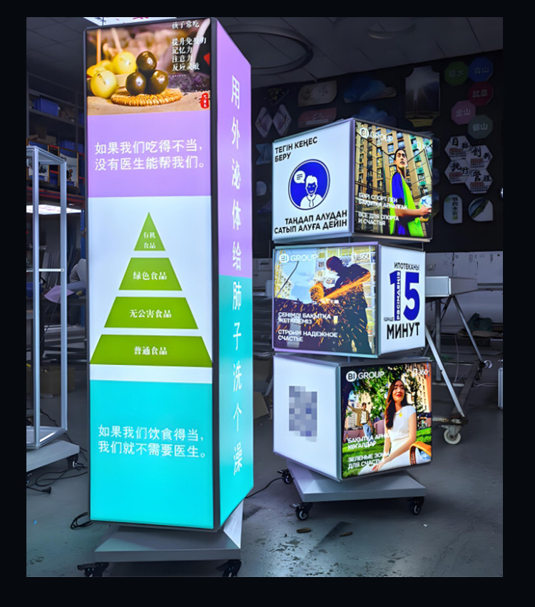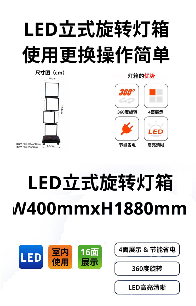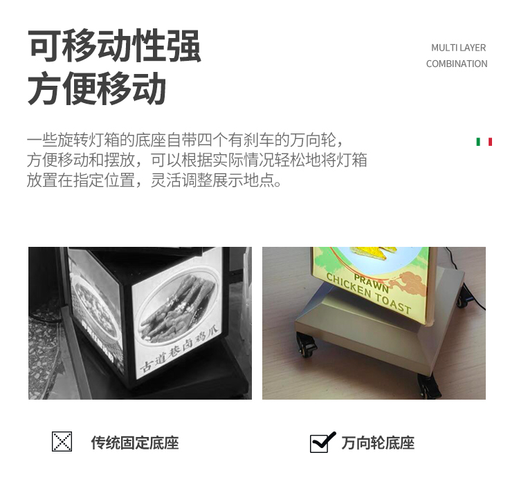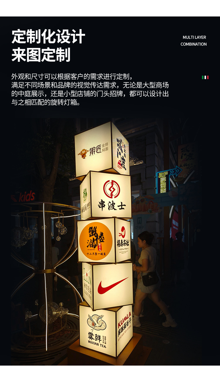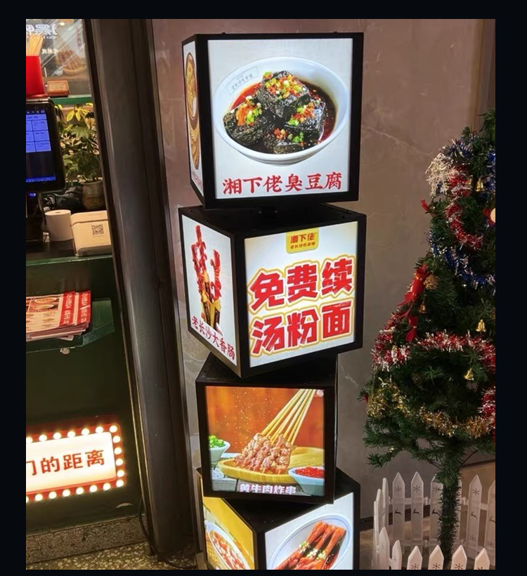 户外立式旋转灯箱落地可移动方形多层四面滚动发光餐饮展示广告牌