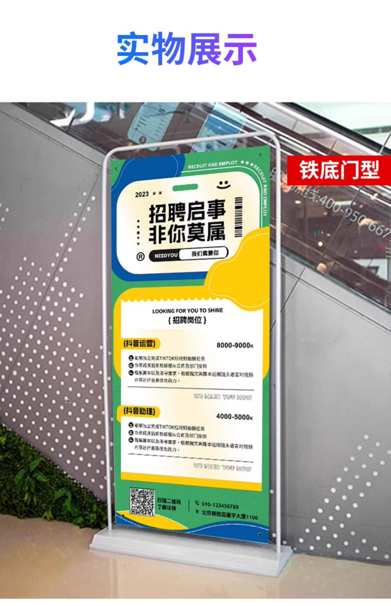 门型展架80X180招聘广告牌展示牌生日海报制作落地易拉宝展示架子