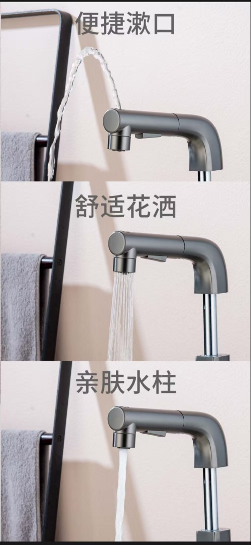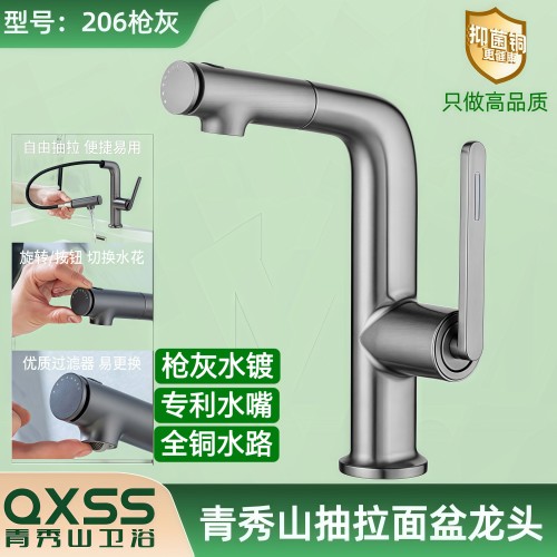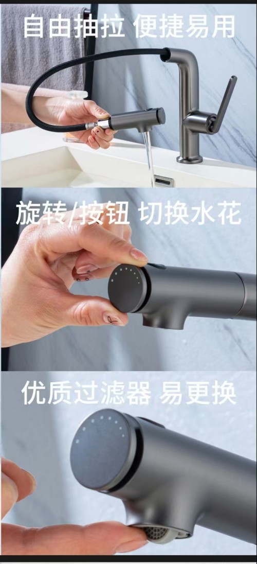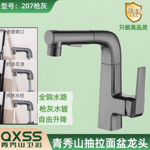 青秀山抽拉面盆龙头枪灰洗手盆抽拉龙头升降抽拉