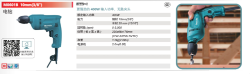 牧田/MT手钻/M0601B400W自锁夹头 M0601B10mm自锁夹头