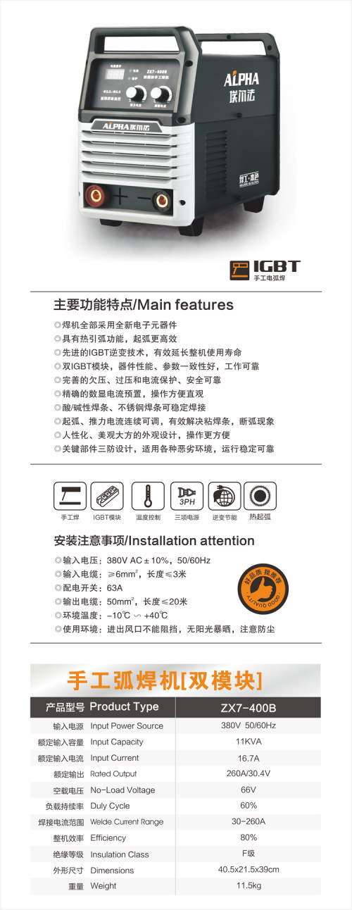 埃尔法手工焊/ZX7-400B(双模块三相)埃尔法手 工焊 ZX7-400B(双模块 三相)