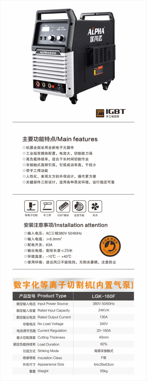 埃尔法/等离子弧切割机(内置)/LGK-160F三相单 用 LGK-160F三相单用